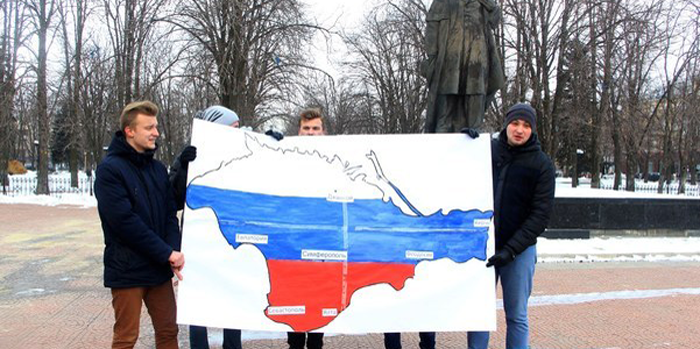 У п’ятницю, 20 січня, в окупованому Луганську сепаратисти з об’єднання «Молода республіка» влаштували флешмоб «Крим-Донбас-Росія». Захід пройшов на підтримку анексованого півострову.