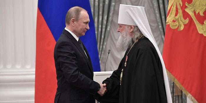 – Владимир Владимирович! Мы молимся о вас и ваших родителях Владимире и Марии. (Далее зачитывает собственный стих, где последняя строчка “Москва – это новый Иерусалим и Третий Рим”)