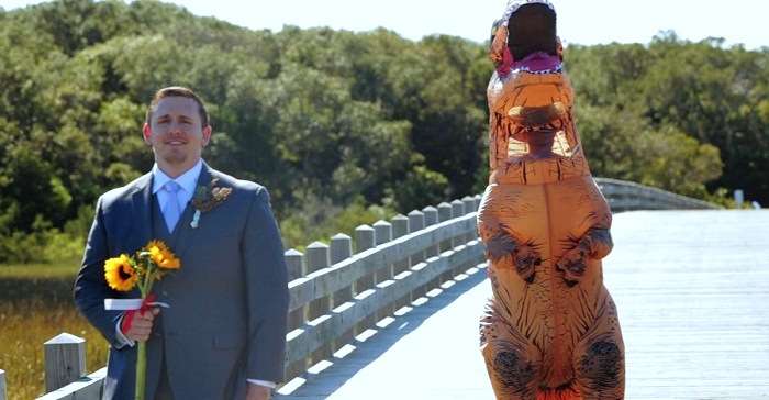 В американському штаті Північна Кароліна жінка прийшла на власне весілля в костюмі тиранозавра.