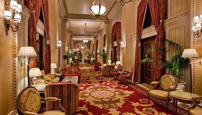 «Это отель «Интерконтиненталь Виллард», правительственный квартал всего в 200 метрах от Белого дома. Здесь останавливаются президенты, шейхи и Тимошенко. Это один из топовых отелей. Украинская делегация остановилась в гораздо более простом – «Хилтон Вашингтон». Однако Тимошенко всегда тяготела к роскоши», – говорят журналисты на камеру, при этом фиксируя богатую обстановку в холле здания.