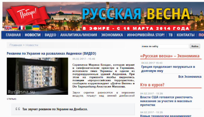 «Анастасія, а ви чуєте крик сина, який втратив матір, який обіцяв «різати українців як свиней»? Чуєте ви і ваші читачі крики тих, хто постраждав на «Мотелі»? Ви чуєте плач всіх тих, хто втратив будинку, чиїх дітей вбила Україна і ті, хто приймав присягу ВСУ під звуки гімну? Чого хотіла добитися скрипалька Марина цим перформансом, неясно, але подібність з похоронної піснею «героям» «повзучого», захопили поки тільки місця на цвинтарях, дуже стійке», – написало про подію одне із сепаратистських видань Донбасу.