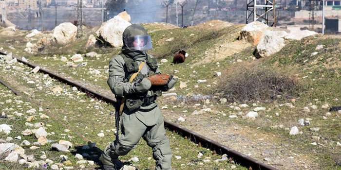 У Міністерстві оборони Російської Федерації показали роботу військовослужбовців з розмінування в Сирії. Сапери Міжнародного протимінного центру ЗС РФ оглядають зруйновані будівлі в Алеппо і знищують боєприпаси і саморобні вибухові пристрої, які не розірвалися. Також військові інженери проводять розмінування об’єктів транспортної інфраструктури. У пустельних умовах залізниця – це готове укріплення. Насип з гравію виконує роль бруствера, укриває від куль і осколків, а підступи до лінії оборони стають мінними полями. Тому вся розгалужена залізнична мережа навколо Алеппо замінована величезною кількістю всіляких вибухових пристроїв і мін.