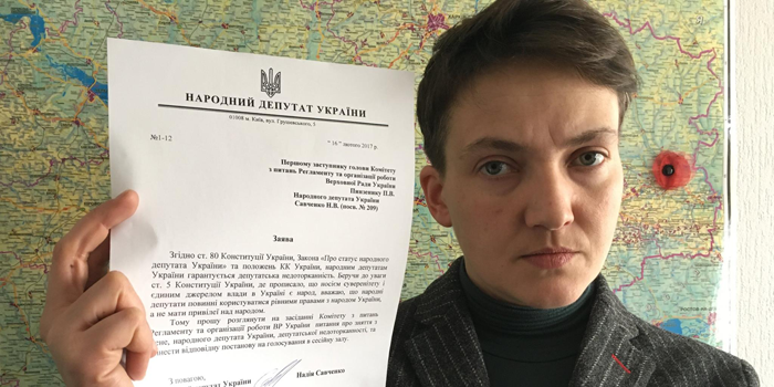 Питання зняття недоторканності з народних депутатів Надія Савченко піднімала й раніше.
