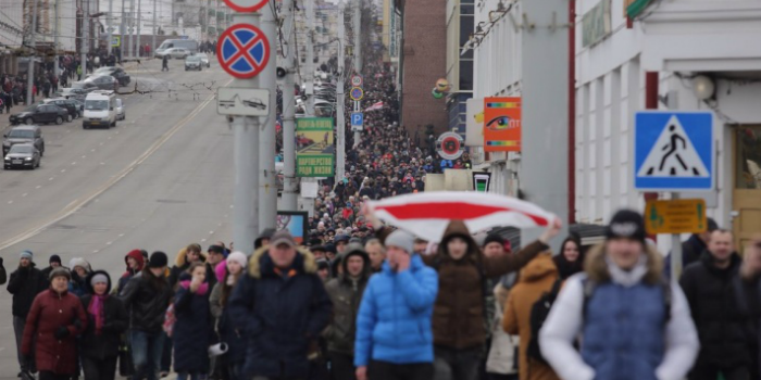 Нагадаємо, 17 лютого, в Мінську пройшов «Марш розсерджених білорусів». Учасники акції провели народні збори, на яких вирішили скасувати декрет «щодо дармоїдів», зупинити зниження доходів населення та зростання плати за комунальні послуги, а також провести справедливі вибори. Згодом активісти вирушили ходою по проспекту Незалежності до будівлі Міністерства з податків і зборів, що на вулиці Радянській.