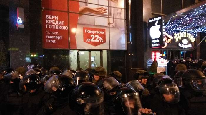 В столице снова беспорядки и столкновения: представители Добровольческого движения ОУН под руководством своего лидера Николая Коханивского громили Альфа-банк. Позже они были участниками столкновения с правоохранителями.