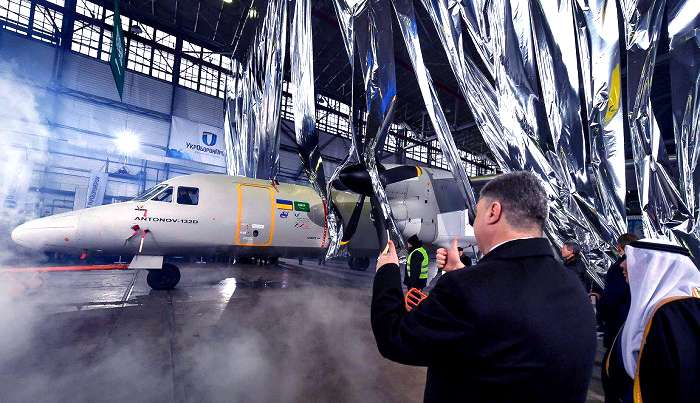 «Антонов» продемонстрував перший політ нового українського транспортного літака, що отримав назву АН-132D. При відправці екіпажу в політ був присутній український президент Петро Порошенко.