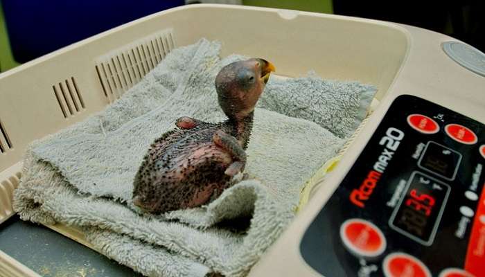По ее словам, птенец находится под постоянным наблюдением ветеринаров, за ним ухаживают и кормят специальными смесями каждые 2 часа, даже ночью.