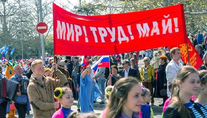 Анексований Крим 1 травня занурився в святкування з нагоди Дня праці. Заходи і демонстрації проходили під комуністичними гаслами і прапорами, як, наприклад, в Сімферополі. У них були задіяні переважно працівники бюджетної сфери.