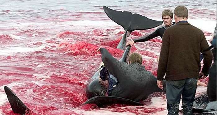 Когда начинается миграция, животные подплывают близко к берегу, где их поджидают местные жители на лодках, которые загоняют китов на мелководье. У берега млекопитающих убивают, а туши вытаскивают на берег для разделки. В результате этого в летние месяцы погибают около тысячи животных. Воды вокруг островов окрасились кровью.