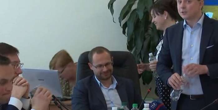Во время выступления Довгий взял бутылку воды со стола, на что Луценко сразу же отреагировал, заявив, что именно эта вода – его.