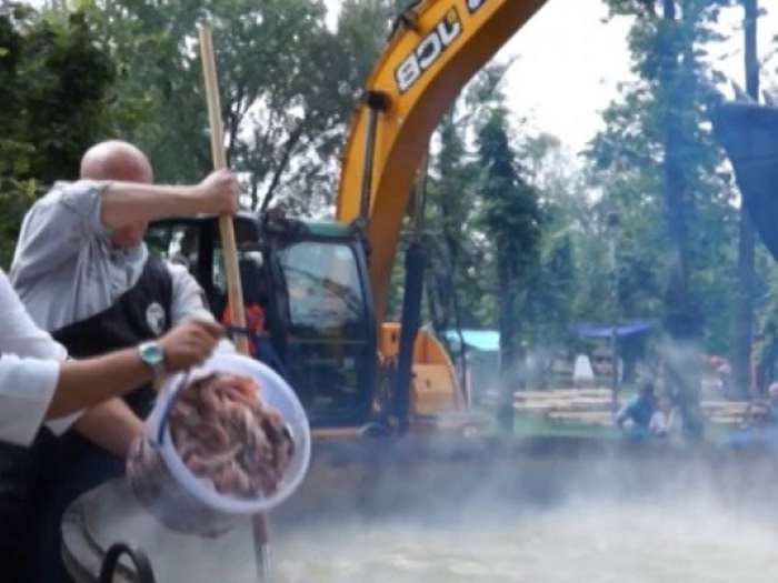 Найважче було, розповідають кулінари, тримати певну температуру у величезному казані, який важить три тонни. Кухарі ж намагалися не лише встановити рекорд, а й приготувати смачну юшку.