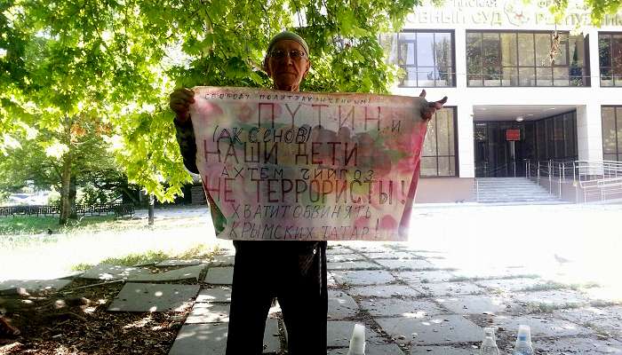 В отношении пожилого крымскотатарского активиста Сервера Караметова, задержанного 8 августа в Симферополе за одиночный пикет в поддержку Ахтема Чийгоза, составили два административных протокола. Один – за “нарушение порядка проведения одиночных пикетов”, второй – за “сопротивление сотрудникам полиции”.