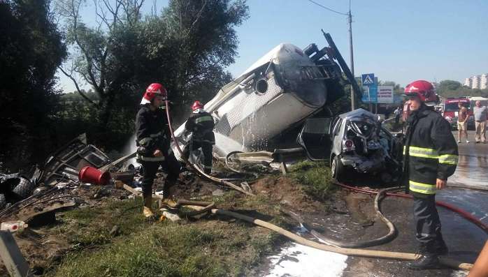 “Около 14:57 в г. Тернополь на перекрестке ул. Объездной и М. Шептицкого грузовой автомобиль Volvo, который осуществлял перевозку цистерны с дизельным топливом (ориентировочно 30 тонн), столкнулся с 4 автомобилями: Daewoo Sens, Volkswagen Polo, Volvo и “ЗАЗ Славута”, – говорится в сообщении.