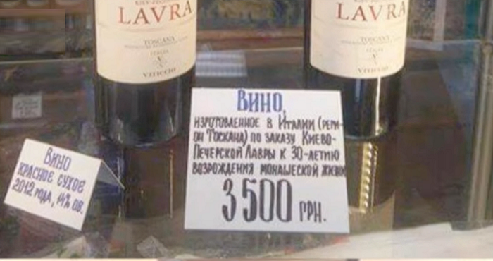 Так, эксклюзивное вино, которое производят в Тоскане, передали лавре. Однако, как оказалось, его начали использовать не по назначению. Бутылки с этикетками «Лавра» появились в киоске, который находится недалеко от святого места. Купить бутылку вина можно обычным людям за немного больше чем одна минимальная зарплаты украинца, 3500 грн.