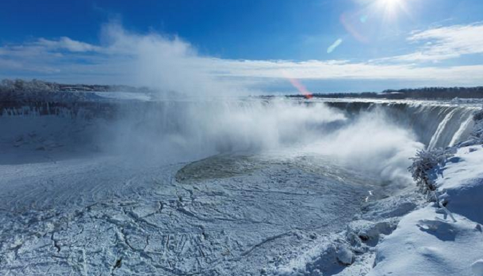 Чрезвычайная холодная погода в Северной Америке и Канаде привела к тому, что скалы Ниагарского водопада начали замерзать. Опустить температуру воздуха до рекордных для этого региона -12 градусов Цельсия помог циклон, который превратил Северо-восток и Средний Запад на зимнее царство.
