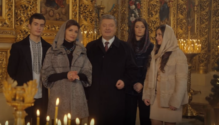 Український президент Петро Порошенко разом із дружиною Мариною та дітьми Євгенією, Олександрою та Михайлом відвідали Михайлівський Золотоверхий собор з нагоди святкування Різдва Христового. Тут вони записали щорічне витання для українців. Однак останні звернули увагу на те, у що одягнені дочки Порошенка.