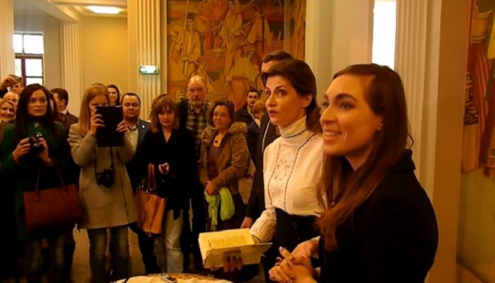 В результате она зачитала его из книги. Однако, видимо от волнения, и это у нее не очень хорошо получилось. После нелегкого выступления Марина Порошенко добавила «Слава Украине!». Присутствующие ей за это аплодировали.