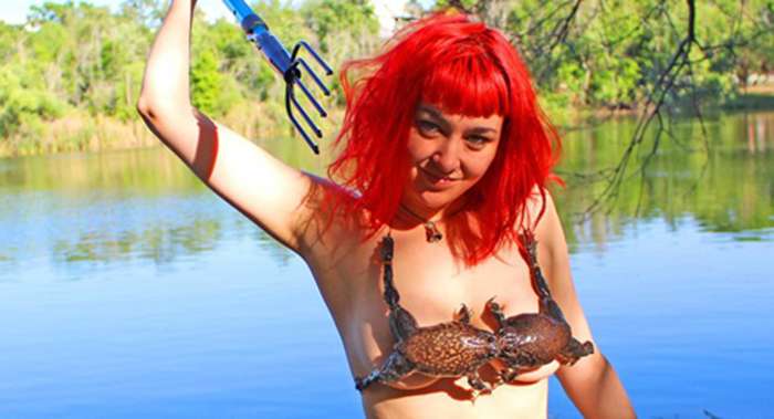 Жительница штата Луизиана, США, создала купальник из тел лягушек. Фабиана Лефлер рассказала, что отец с детства учил ее использовать по максимуму животное, если оно было убито. Не долго думая, девушка словила лягушек, съела их мясо, а шкурки пустила на новый «дизайн».