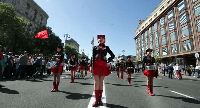 В столице начался масштабный митинг. Украинцы, одетые в красную одежду, вышли в центр Киева с транспарантами и плакатами с требованием улучшения уровня жизни в государстве, уменьшение оплаты за коммунальные услуги и прекращения войны на Донбассе. Всего колонна активистов составила около 2 тысяч человек.