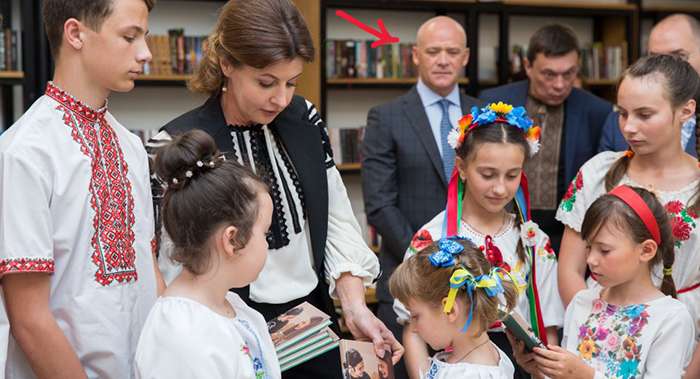 Мэр Одессы Геннадий Труханов, который находится под следствием Национального антикоррупционного бюро Украины, вышивает рушнык с первой леди – Мариной Порошенко. Она, в свою очередь, прилетела в Одессу, чтобы посетить учеников Доброславського УВК.