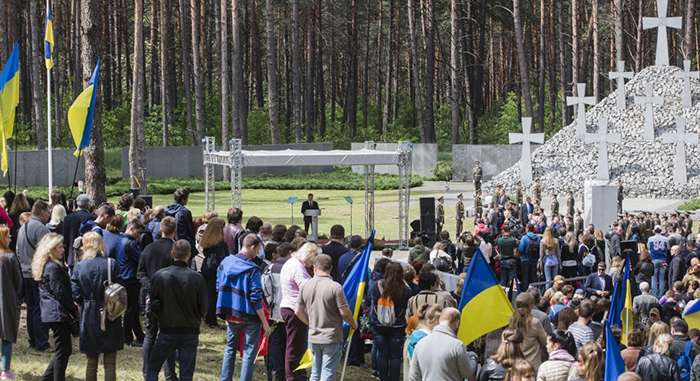 «Склоняя головы и возлагая цветы к памятным знакам на местах безымянных братских захоронений, на земле, где вместе с украинцами полегли тысячи расстрелянных по приказу Сталина польских патриотов, представителей других национальностей, заявляем: мы, украинцы, солидарны со всеми народами, пострадавшими от преступлений тоталитарных режимов. Мы настроены на сотрудничество в преодолении последствий тоталитаризма», – отметил украинский гарант.