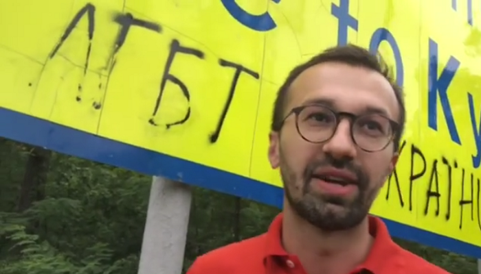 Сергей Лещенко удивился, почему никто не захотел стереть надпись «Геть ЛГБТ з України» с билборда на въезде в столицу. Так, защитник людей нетрадиционной ориентации решил сделать это самостоятельно.
