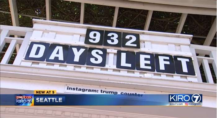 После инаугурации Трампа владелец одного из домов, что в городе Сиэтл, сделал необычную вывеску. Она привлекает каждый день сотни людей. Календарь отсчитывает дни правления президента.