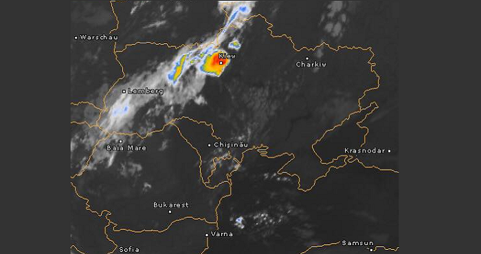 Як відомо, гроза накрила Київ о третій ночі. За словами синоптика Наталії Діденко, на Київ сіла найпотужніша атмосферна пляма із можливих. За її прогнозом, «пляма» зміщується на північний схід.