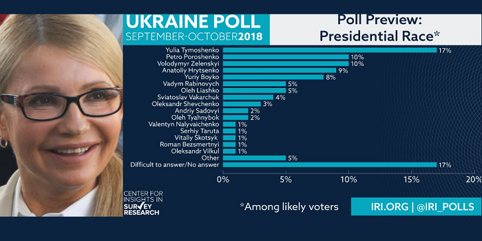 Нардеп на 7% опередила ближайших конкурентов, а ее политсила – на 8%. Стоит отметить, что победу Тимошенко получила бы, если бы выборы прошли в ближайшие выходные. В частности, так ответили большинство респондентов – 17%. За Петра Порошенко проголосовали бы 10%. Стальки же получил бы комик Владимир Зеленский.