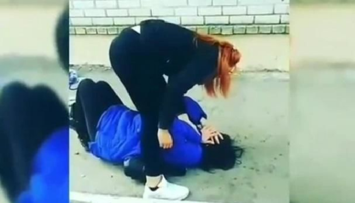 На кадрах видно як дівчина б’є жертву по голові, валить її на землю та хапає за волосся. Причина конфлікту – невідомо. Також невідомо, чи взялись за цю справу правоохоронці.