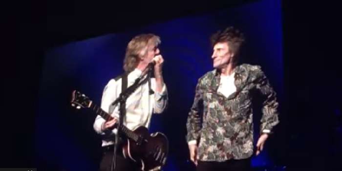 Пол Маккартни удивил фанатов появлением на сцене вместе с Ринго Старр и Ронни Вудом. Музыканты вместе исполнили хит The Beatles «Get Back».