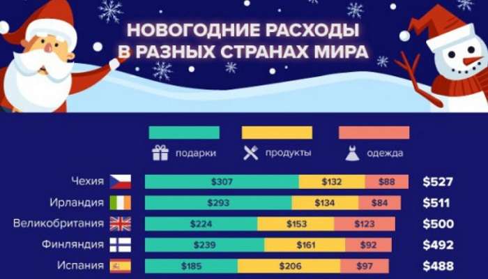 Стало известно, сколько готовы потратить на новогодние праздники в разных уголках мира. Исследование проводил сайт Picodi. Так, первое место в рейтинге заняла Чехия, где люди готовы потратить на праздники $527, что эквивалентно 14 700 грн.