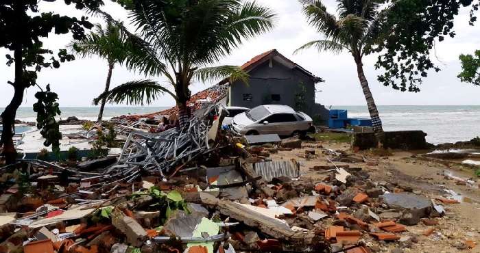В результате возникло разрушительное цунами, которое застало жителей двух островов неожиданно. По меньшей мере 11 687 человек были перемещены из зоны кризисной ситуации. Кроме того, цунами нанесло немалый материальный ущерб. 611 домов, 69 гостиниц, 60 магазинов и 420 лодок были повреждены. Президент Индонезии Джоко Видодо заявил, что он молится за жертв катастрофы.