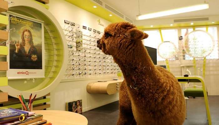 На прошлой неделе во французском городе Бретань произошло событие в одном из оптических магазинов. В заведение забежала альпака. Животное рассматривало товар и созерцало себя в зеркале, пока его не поймали правоохранители и не вынесли из магазина просто на руках.