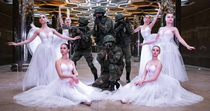 В России решили необычным способом поздравить женщин с 8 Марта. В частности вооруженные военные Центрального военного округа приняли участие в фотосессии с хрупкими участниками коллектива современной хореографии «Лаборатория Танца». Последние позировали в пачках балерин, пышных платьях и платьях мини.