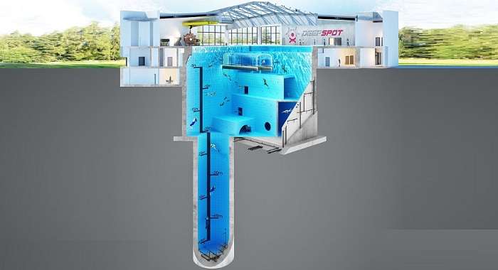 Поплавать в таком можно будет в центре DeepSpot. Открытие супербассейна запланировано на осень 2019 года. Он будет доступен для всех, не только для аквалангистов. Согласно проекту, бассейн будет иметь подводный тоннель, гостиничные номера с видом на бассейн, а также рестораны и конференц-залы.