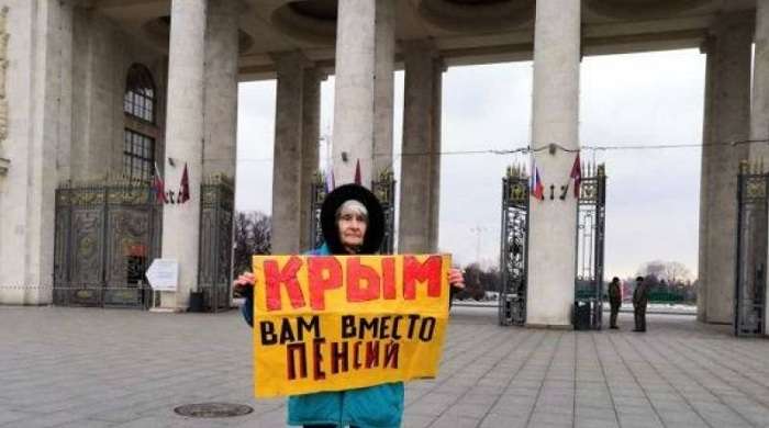 В минувшие выходные в центре Москвы прошли одиночные пикеты. Неравнодушные россияне напомнили о незаконной аннексии Крыма. Так, люди держали в руках плакаты с надписями «Крым. Итоги», на которых были списки политзаключенных Кремля, а также «Список Олега Сенцова», «Крым вам вместо пенсий».