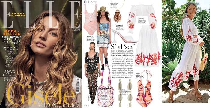 Теперь пример элегантного и одновременно легкого летнего наряда от Lee Pfayfer показало издание ELLE Spain. Так, модный глянец порекомендовал испанским красавицам удачный «лук» для летнего отдыха – нежный белый меди костюм под названием «Bora Bora». Выполнен он из льна и вручную украшен вышивкой – рифовыми кораллами.