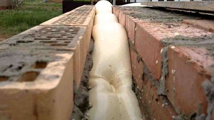 - утепление стен так же может происходить путем заливки воздушных полостей заливочным пенополиуретаном, что гораздо эффективнее других методик защиты дома от промерзаний и потерь тепла;