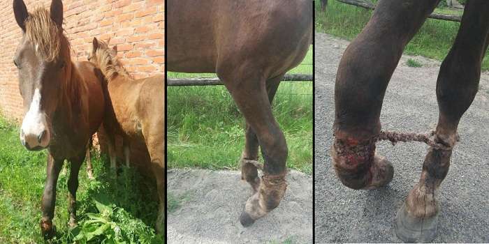 «У цієї конячкиі є господар Бех Сергій Леонідович. У нього є ще тварини (корови, коні). І всі містяться в поганих умовах. Але ось випадок з цим конем просто кричущий. Подивіться, на що перетворилися його ноги, який біль відчуває тварина день у день. Це не просто жорстоке ставлення, якийсь садизм. Допомога і лікування тварині не надається. Скільки люди не закликали до його совісті, людяності, все без толку. Допоможіть врятувати тварину!!!» – йдеться у повідомленні.