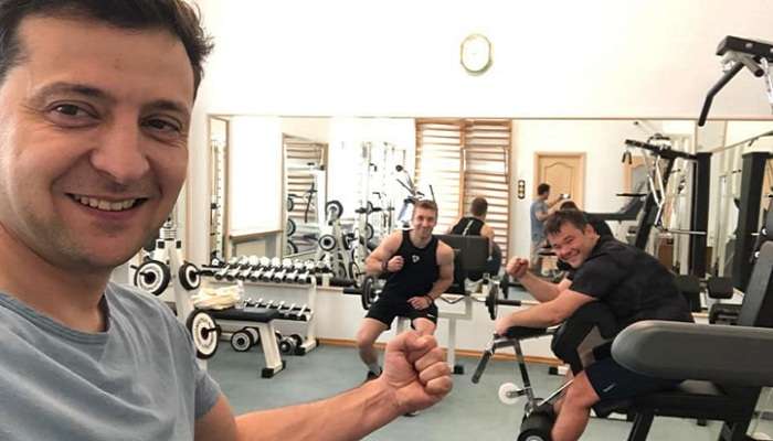 «На Банковій. Хоч гантелі не вкрали», – іронічно відзначив Зеленський.