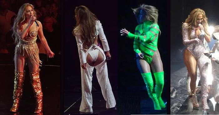 Так, Дженнифер Лопес удивила не только показательными ансамблями, но и откровенными костюмами. Знаменитость появлялась в серебристом костюме, золотистом боди. Она также безупречно выглядела в джинсовом костюме и белом комплекте, который демонстрировал ее ягодицы.