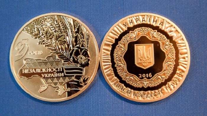Нагадаємо, монета «25 років незалежності України» має номінал 250 гривень. Вона входить в серію «Відродження державності». Монета була випущена у 2016 році. Її тираж – 400 штук. Так, на ній можна побачити букет, карту.