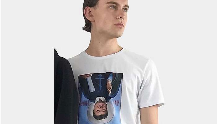 Так, украинский бренд одежды и аксессуаров ручной работы PPPARTEM представил на своей странице в соцсети фото футболки с перевернутым изображением Порошенко в виде иконы. Футболка называется «ППЦК».