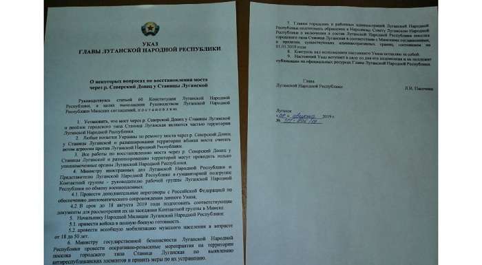 Так, у документі, датованому від 8 серпня, зазначено, що Пасічник відносить міст через річку Сіверський Донець у Станиці Луганській та смт Станиця Луганська до «ЛНР». Калінін наголосив, що папір ще не підписания, але уже зареєстрований у місцевій канцелярії.