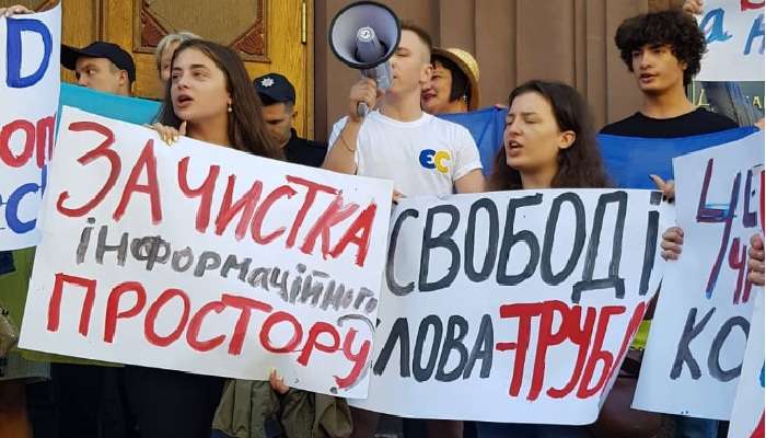 «Зачистка інформаційного простору», – з таким плакатом стояла Олександра Порошенко.