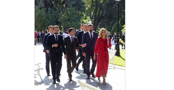Президент України Володимир Зеленський представив новий знімок з дружиною Оленою Зеленською. Так, Перша леді країни була одягнена о червону сукню. Знімок був зроблений 24 серпня біля Маріїнського палацу.