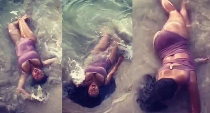 Голлівудська супурзірка Сальма Хайєк поділилась зі своїми шанувальниками у соцмережі відео, на якому вона бовтається біля моря. В якийсь момент хвиля накрила зірку і вона намагалась зобразити спокусливі пози, однак, дарма.