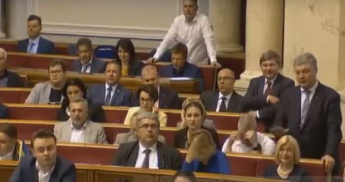 Під час засідання Верховної Ради президент Володимир Зеленський швидко вгамував партію «Європейська соділарність» Петра Порошенка. Так, новоспечений голова ВРУ Дмитро Разумков зачитував постанову про попереднє схвалення зняття депутатської недоторканності.