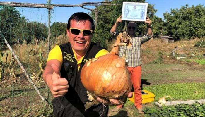 В Україні зафіксували новий рекорд. Житель міста Буча виростив майже двокілограмову цибулю.